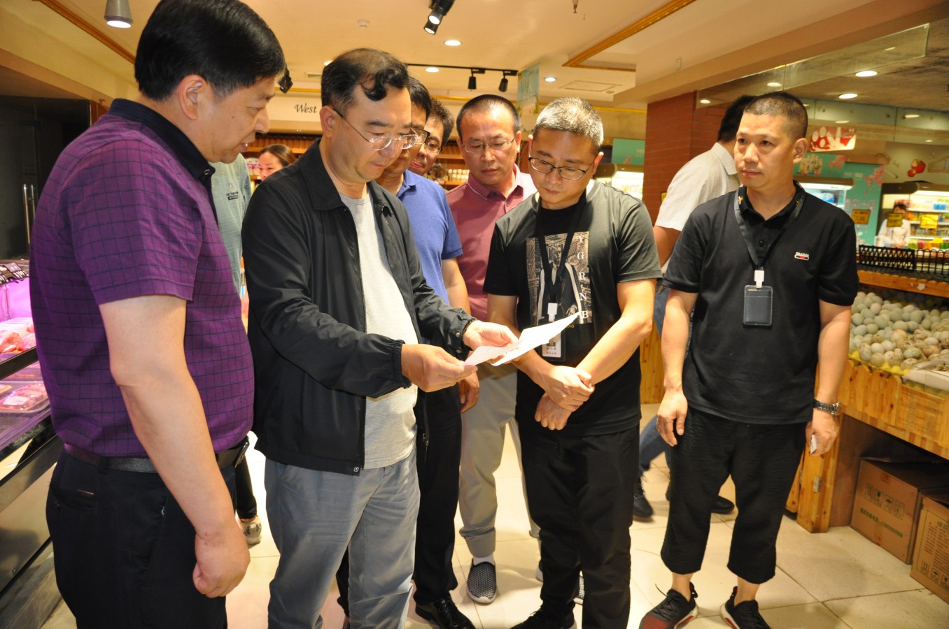 杨局长详细询问了超市的经营情况,他指出食品安全关系到广大消费者的身体健康,一定要增强责任意识、食品安全意识。食品经营企业要严格落实各项管理制度,加强日常检查,确保商品质量。